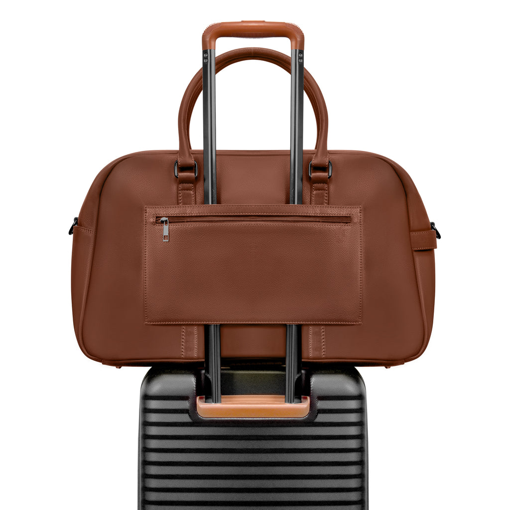 Elevate your travel experience with the Duffle Bag from the Onyx Collection, designed for the modern traveler. Made from exquisite top-grain leather, this bag features a spacious interior with thoughtfully arranged slip pockets and an RFID pocket for added security. The front slip pocket keeps your essentials at your fingertips, and the trolley strap ensures effortless navigation through busy terminals, making it the perfect companion for weekend getaways.