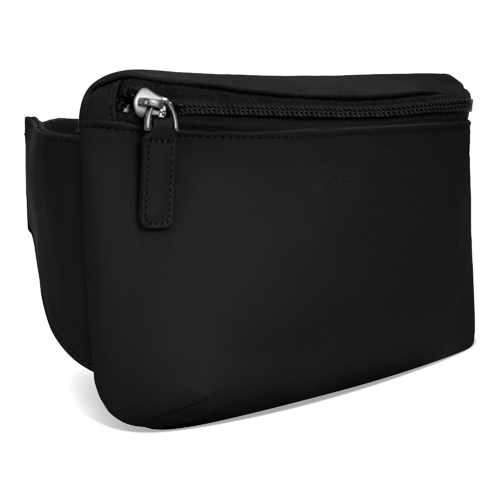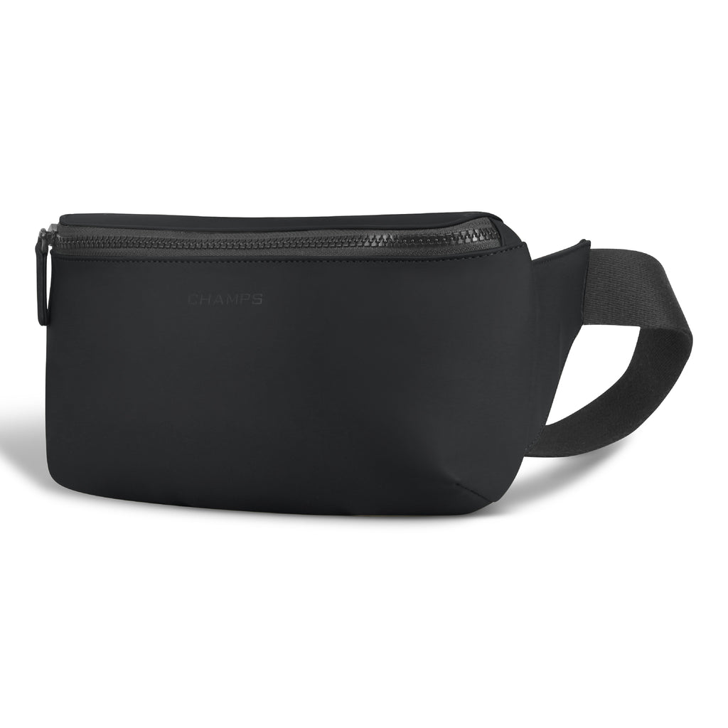 Introducing the Waist-pack from the Onyx Collection. Designed for the active individual and perfect for your keys, phone, wallet, and small accessories. Made with premium water-resistant PU material to ensure both durability and a sleek, modern look. It features a specialized RFID pocket to protect your sensitive information from digital theft, giving you peace of mind whether you're running errands, traveling, or out for a jog. This Waist-pack includes an adjustable strap with a secure buckle, allowing you to customize the fit for maximum comfort and convenience. Its compact design ensures that you can carry your essentials without feeling weighed down, making it an ideal accessory for a busy, on-the-go lifestyle. Combining functionality with a contemporary aesthetic, the Champs Waist-pack from the Onyx Collection is the perfect addition to your accessory lineup.