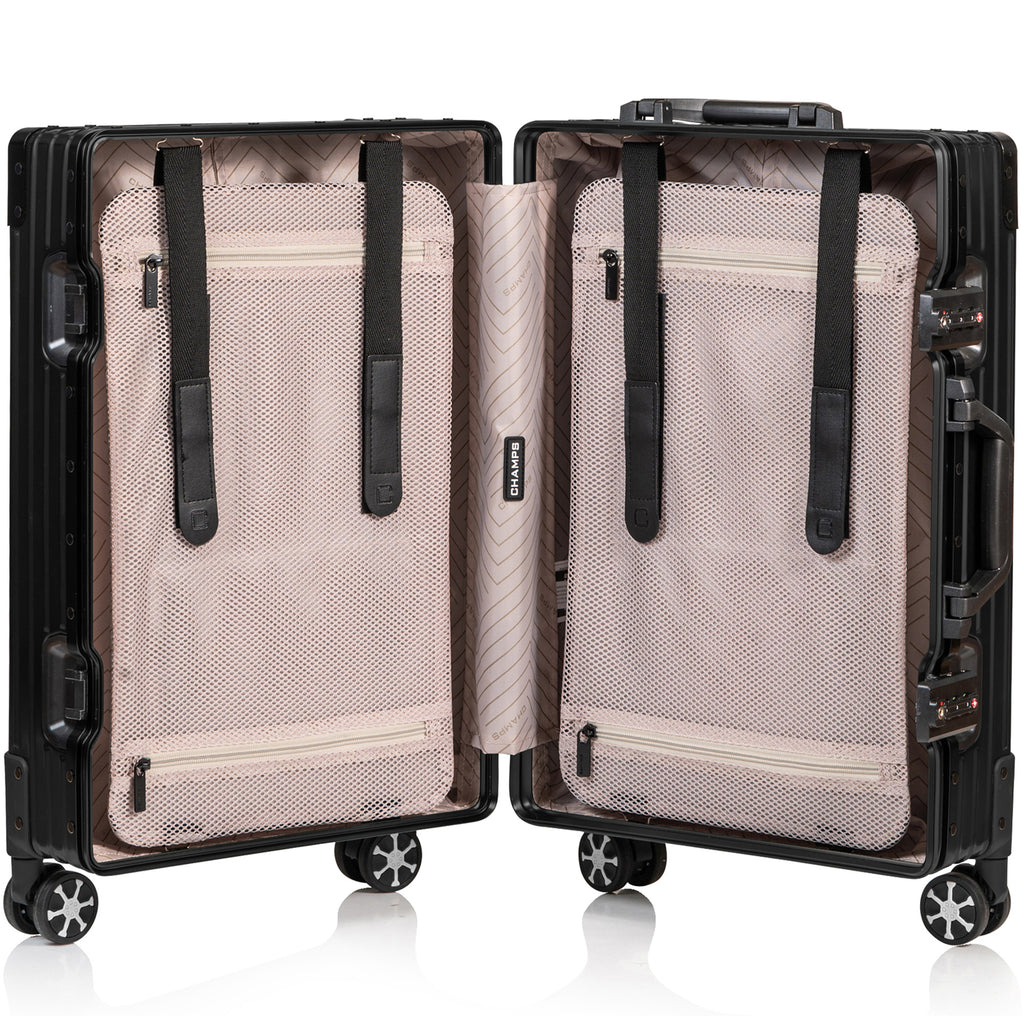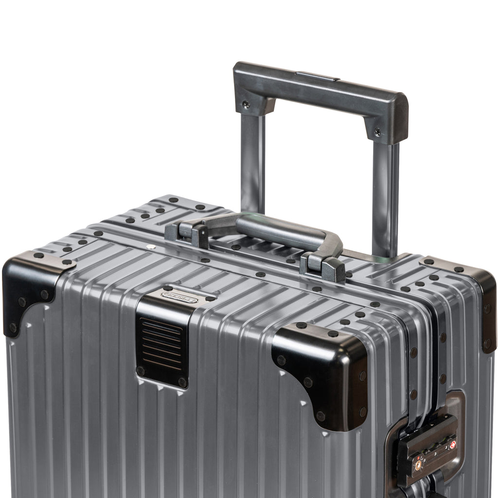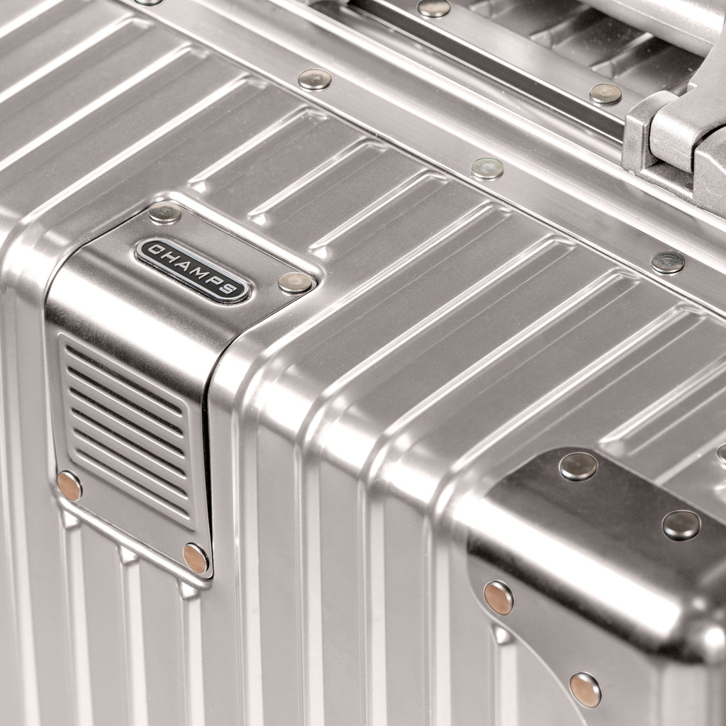 Step into the world of effortless travel with the Elite Collection Aluminum Carry-on from Champs. Crafted from robust aluminum, this carry-on is more than just luggage—it's a promise of reliability and sophistication. Equipped with dual TSA-approved combination locks, it ensures your belongings stay secure while symbolizing the trust and commitment of your journey.