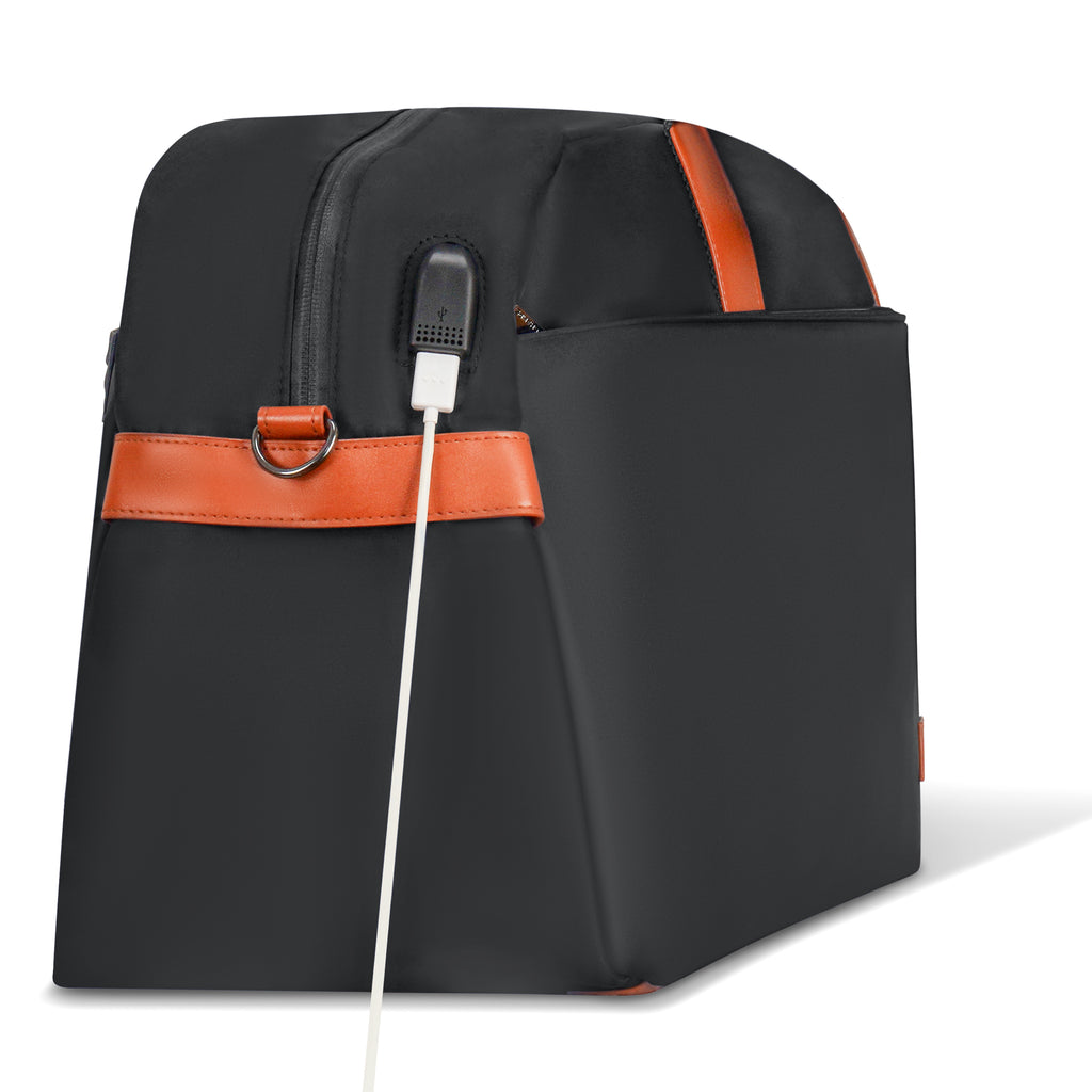 Travel in style with the Vintage Collection Duffle Bag, designed to seamlessly blend classic elegance with modern functionality. This versatile bag features a trolley strap, allowing you to easily attach it to your luggage for effortless mobility through airports and train stations. Stay powered up on the go with a built-in USB port, ensuring your devices are always ready when you need them. Inside, you’ll find dedicated laptop and tablet sleeves to keep your tech protected, alongside a specialized shoe pocket that keeps your footwear separate and your clothes clean. The water-resistant material, paired with a waterproof zipper, ensures your belongings stay dry, no matter the weather. Thoughtfully designed with a key clip for quick access to your essentials, this duffle bag is the perfect travel companion for those who appreciate both vintage charm and modern convenience.