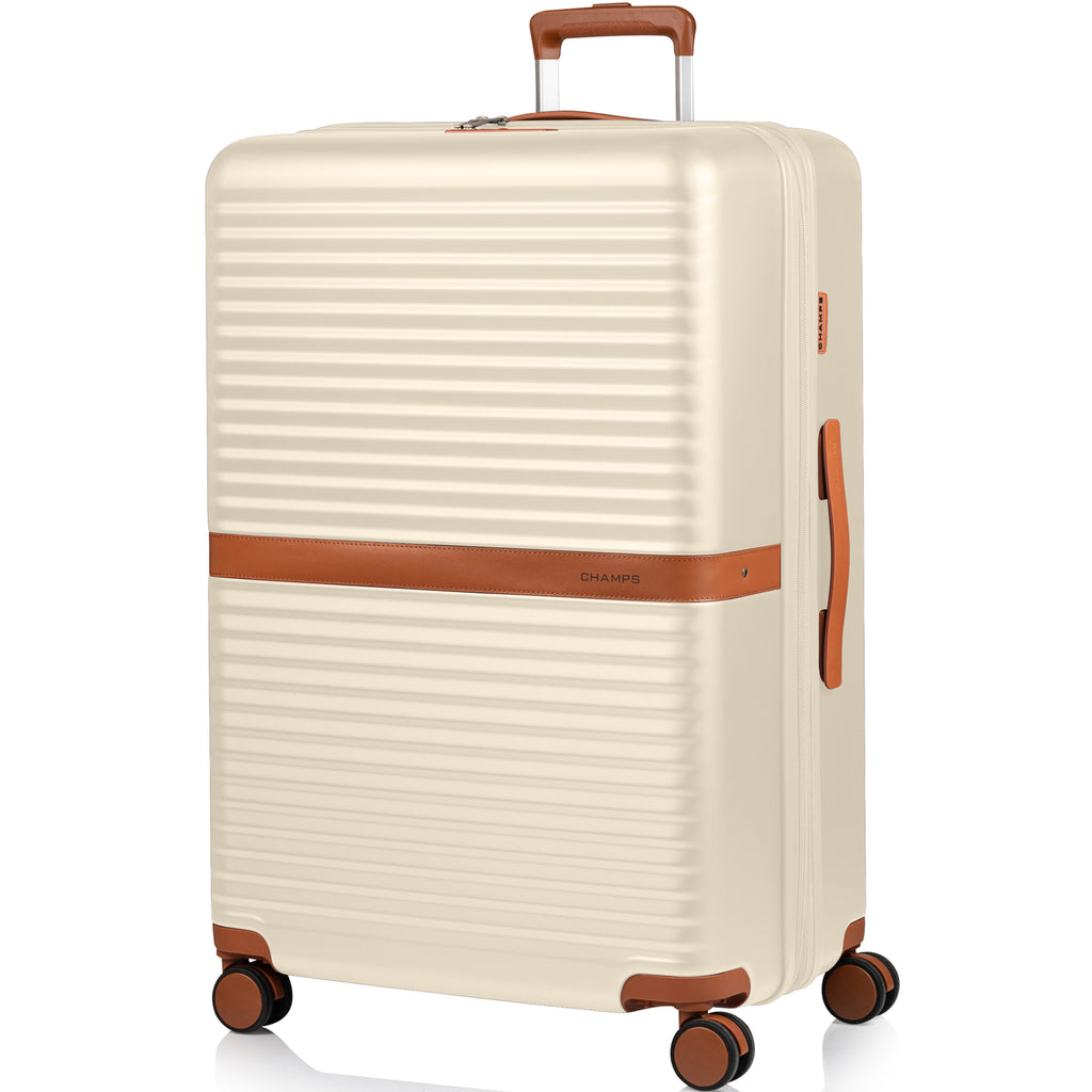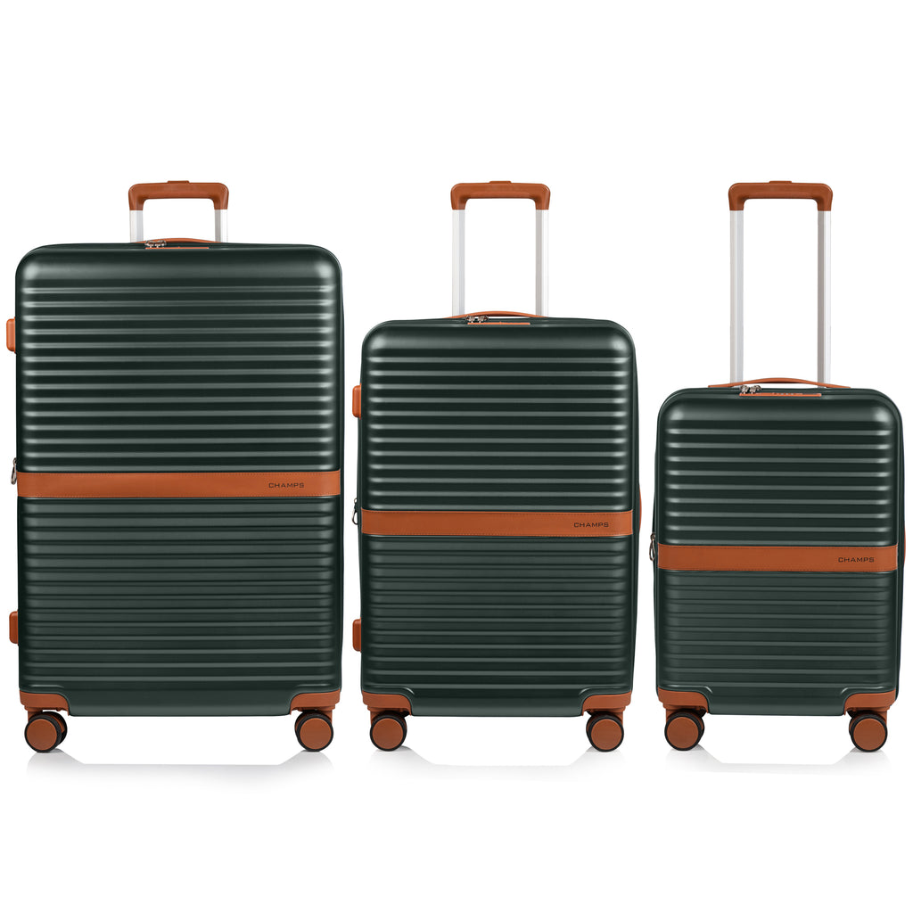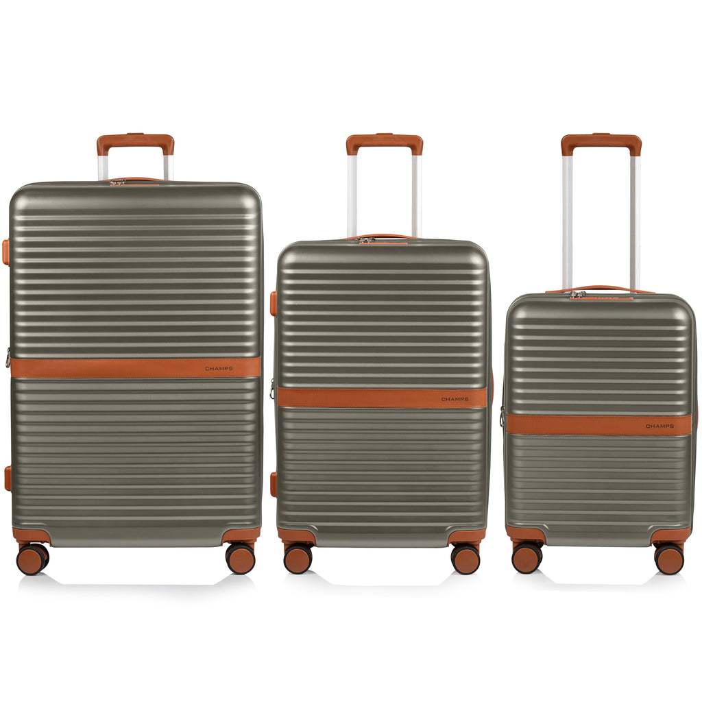 This stunning collection is vintage inspired, with a design that leaves a lasting impression. It's built with premium light-weight polycarbonate material that's made to last. Smooth spinner wheels allow for effortless movement on any surface, and recessed TSA-approved locks ensure added security. The Carry-on has a built-in USB port for charging on-the-go, and an array of pockets so you can stay organized. The Medium check-in bag is a versatile size for all-inclusive trips, cruises or weekend getaways. Lastly, the Large check-in bag is perfect for longer trips or for those who want to pack more. Together, these 3 pieces form our best value."
