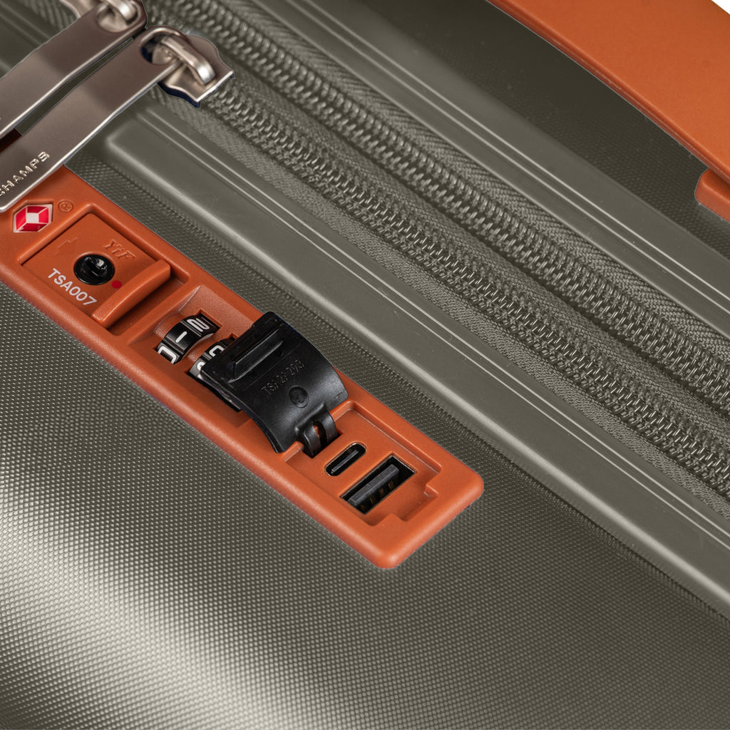 Carry-on with USB port for charging on-the-go (cable included, power bank not included)