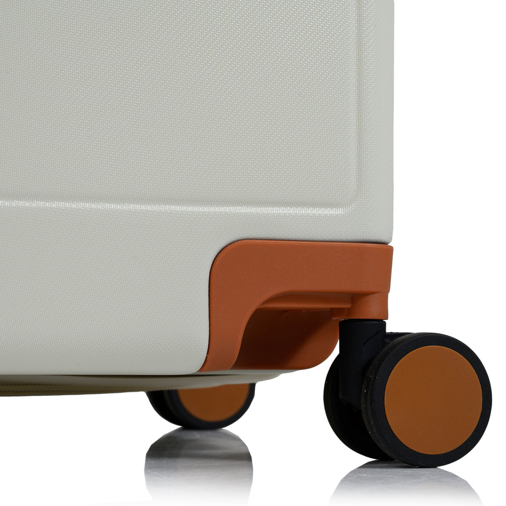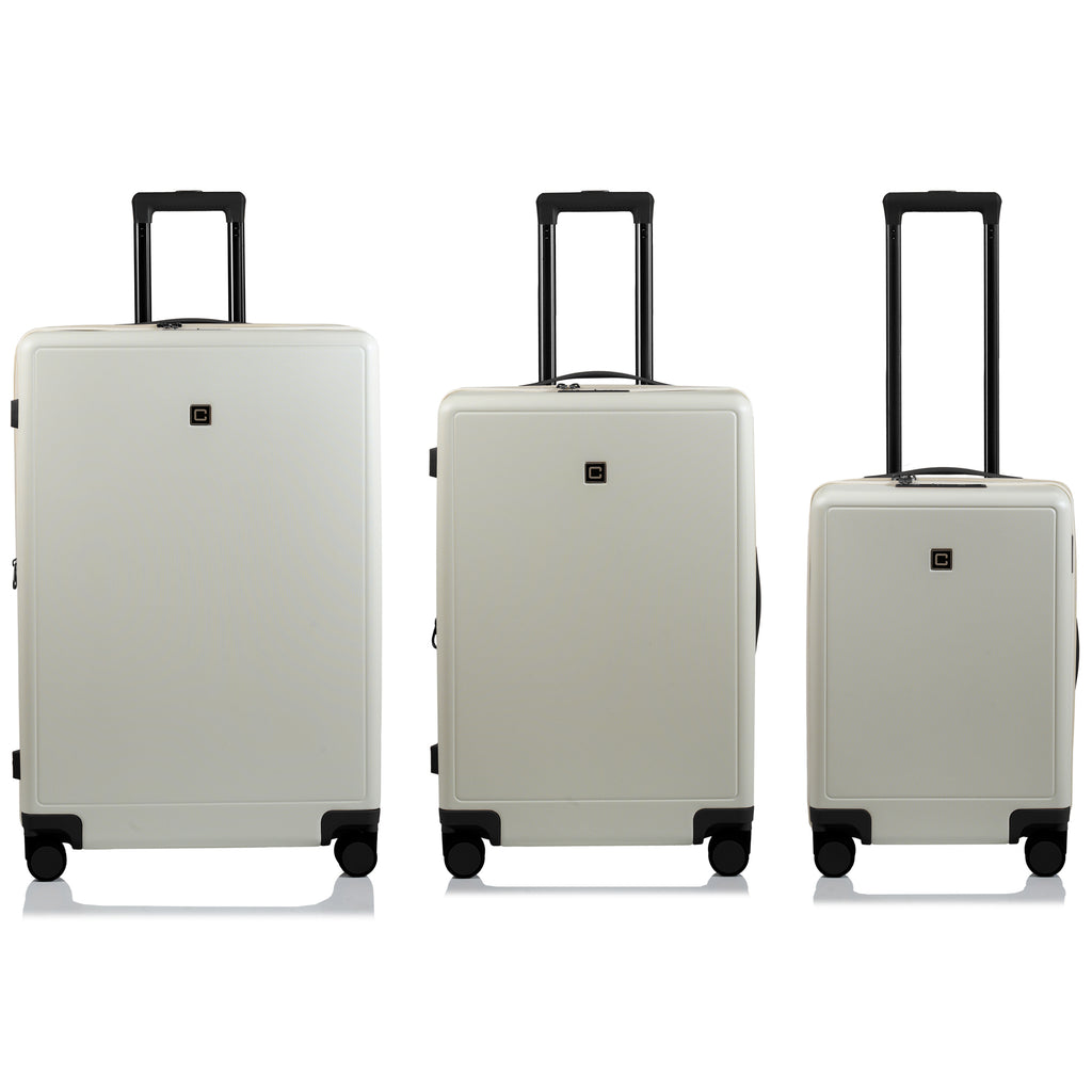 Introducing the Vintage Muse Collection, a perfect blend of vintage charm and modern flair. This meticulously designed 3-piece set is available in four elegant colors, with two featuring black accents and two adorned with tan accents. The Vintage Muse Collection offers an array of premium features, including on-the-go charging, recessed TSA locks, and expandability across all sizes. Ideal for both individuals and families, this collection ensures adaptability while maximizing storage efficiency through its clever nesting design.