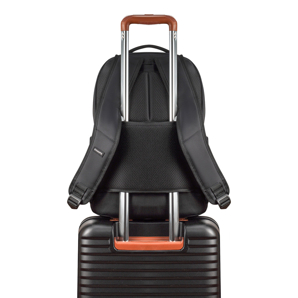 Le sac à dos Daily de la collection Onyx est conçu pour une utilisation quotidienne par ceux qui apprécient les fonctionnalités technologiques dans un sac léger de tous les jours. En tant que compagnon ultime pour les aventures urbaines et au-delà, il est conçu pour vous garder organisé et élégant. Il est doté d'une poche sécurisée anti-RFID pour protéger vos informations sensibles et de bretelles réglables en maille aérée pour un confort et une circulation d'air inégalés. La housse rembourrée pour ordinateur portable et tablette de 15,6 pouces avec fermeture à sangle de compression protège vos essentiels technologiques, tandis que le port de charge USB-C intégré vous permet de rester connecté et alimenté lors de vos déplacements. Attachez sans effort votre sac à dos à votre bagage à main grâce à la sangle de chariot pratique et gardez vos objets de valeur en sécurité grâce à une poche zippée discrète située derrière. Restez hydraté grâce à la poche latérale extensible facilement accessible pour votre bouteille d'eau et profitez d'une prise en main rapide grâce à la poignée de transport supérieure robuste. Le porte-clés intérieur amovible vous garantit de ne plus jamais perdre vos clés. Améliorez votre trajet quotidien, votre voyage ou votre aventure de week-end avec le sac à dos The Champs Daily, conçu avec à la fois style et fonctionnalité à l'esprit.