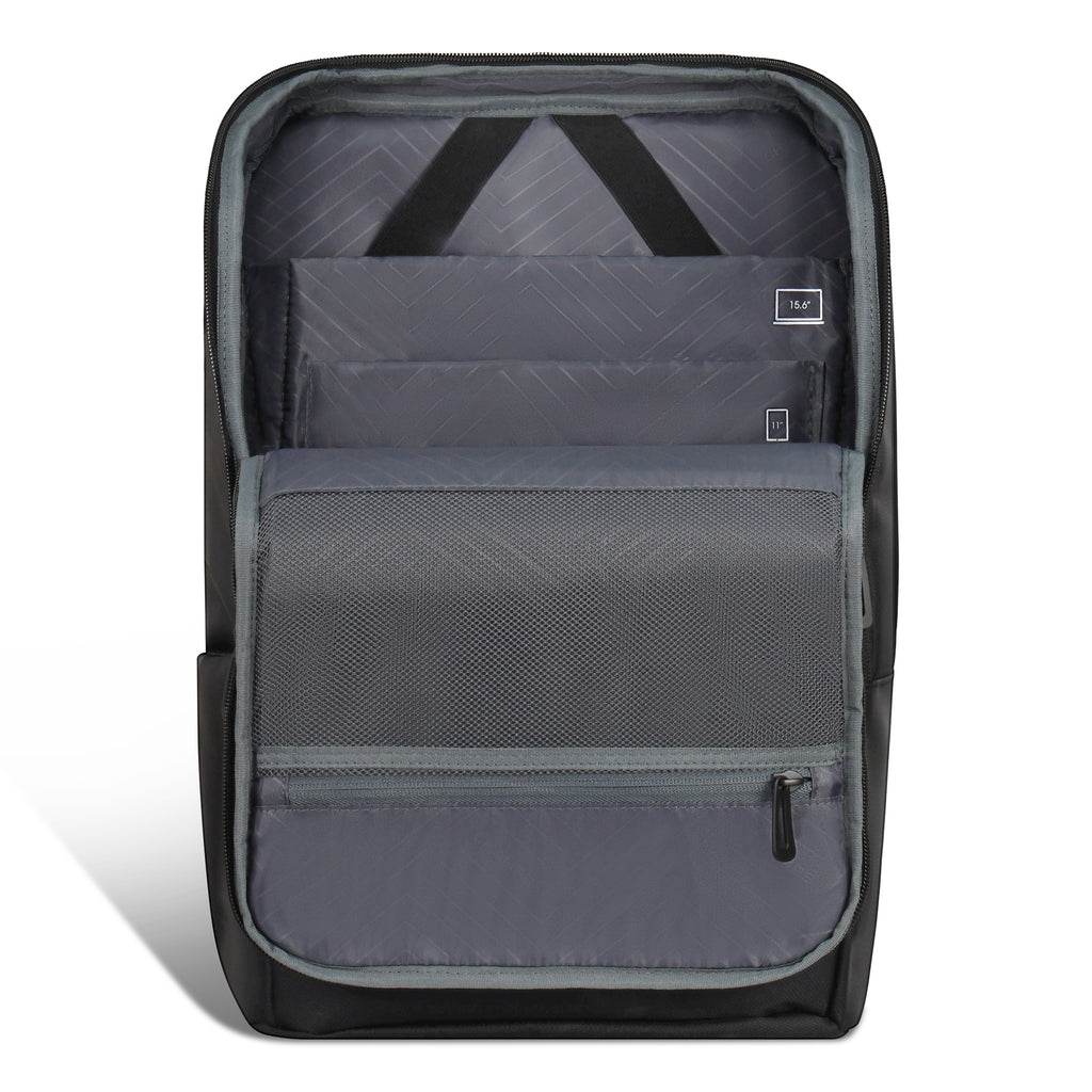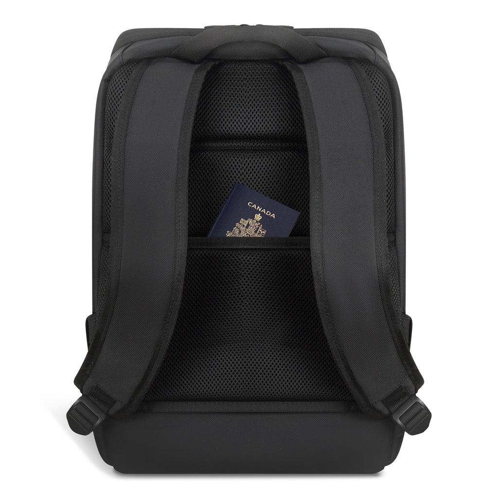 Le sac à dos Tech de la collection Onyx est un compagnon essentiel pour le voyageur minimaliste et technologique, parfait pour les navetteurs et les aventuriers modernes. Fabriqué en nylon résistant à l'eau, ce sac à dos assure une protection optimale de vos effets personnels dans toutes les conditions météorologiques. Bénéficiez d'une sécurité renforcée grâce à une poche RFID intégrée, protégeant vos informations personnelles contre le vol numérique. Conçues pour le confort, les bretelles réglables en maille aérée offrent un ajustement personnalisé, tandis que la housse rembourrée pour ordinateur portable et tablette de 15,6 pouces avec fermeture à sangle de compression maintient vos appareils en sécurité lors de vos déplacements. Restez connecté et alimenté grâce au port de charge et au câble USB-C. Le sac à dos dispose d'un seul grand compartiment, offrant suffisamment d'espace pour organiser efficacement vos essentiels. Naviguez facilement dans les aéroports en attachant votre sac à dos à votre valise avec la sangle du chariot, et profitez de la poche zippée cachée pour plus de commodité. Améliorez vos déplacements quotidiens ou vos expériences de voyage avec le sac à dos Tech de la collection Onyx, où le design minimaliste rencontre la fonctionnalité et la sophistication.