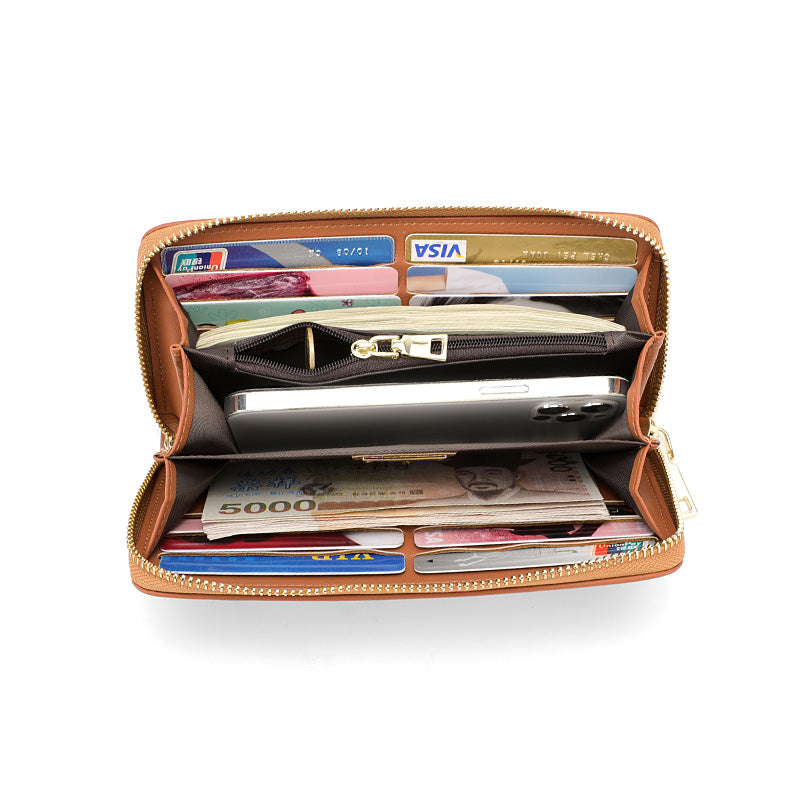 Elevate your everyday essentials with the Iconic Zip-Around Wallet. Made from supple vegan leather, this thoughtfully designed wallet offers seamless organization for your credit cards and cash. Its sleek, modern aesthetic, combined with gold-tone hardware and RFID protection, ensures both style and security. Choose from a vibrant selection of colors to add a pop of personality to your everyday routine.